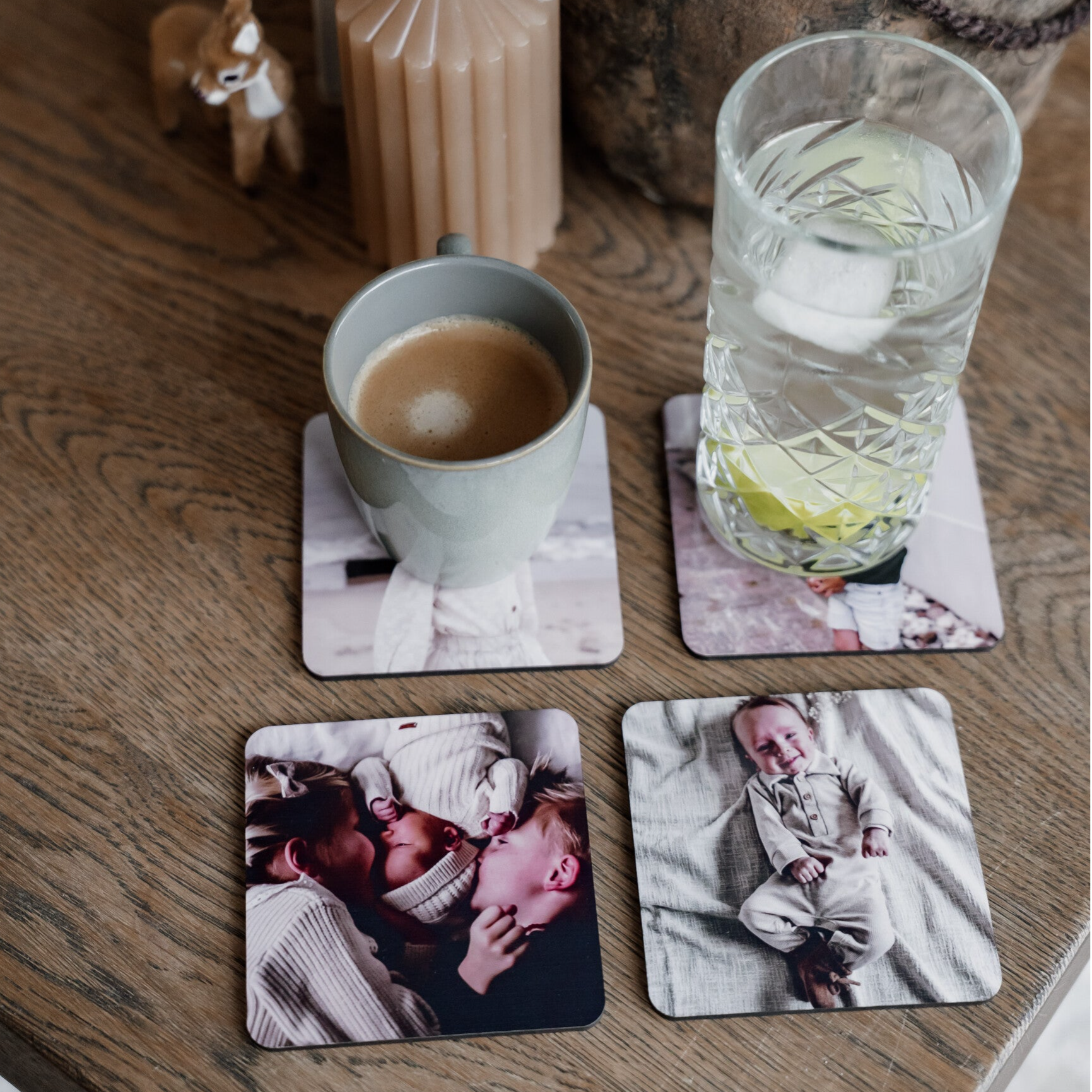 Of het nu gaat om een schattige babyfoto, een grappige vakantieherinnering, een foto van je huisdier of een liefdevolle boodschap – met deze onderzetters tover je jouw tafel om tot een plek vol verhalen. Combineer meerdere onderzetters met verschillende foto's in een set. Zo heb je een leuke mix aan herinneringen die telkens opnieuw een glimlach oproepen!