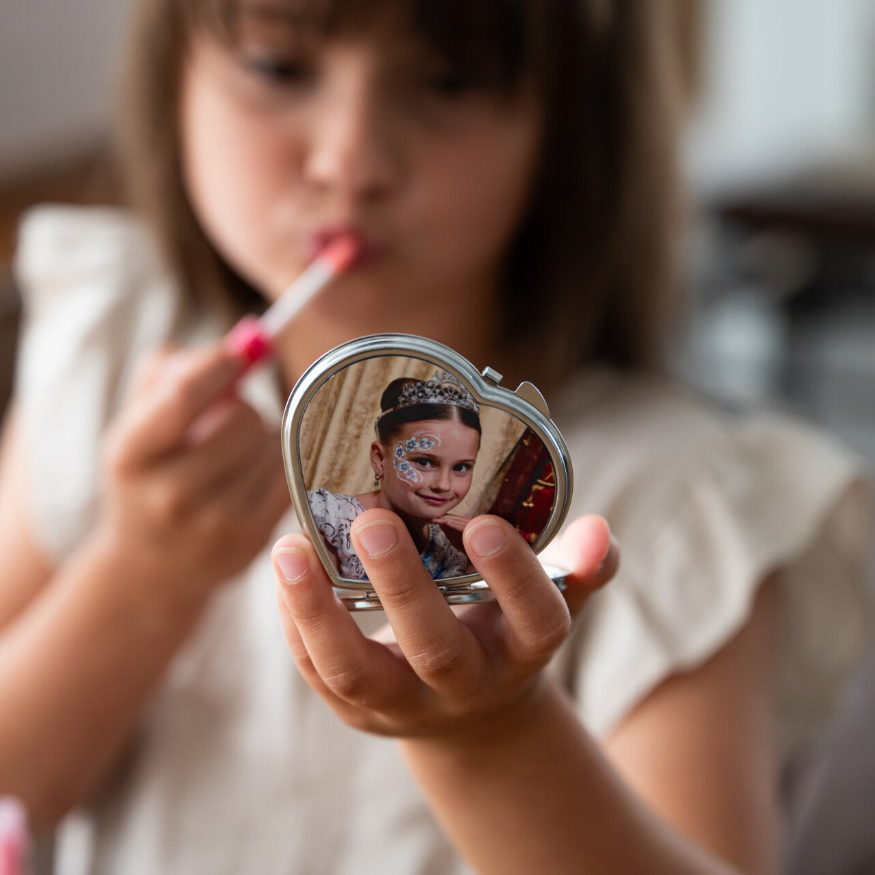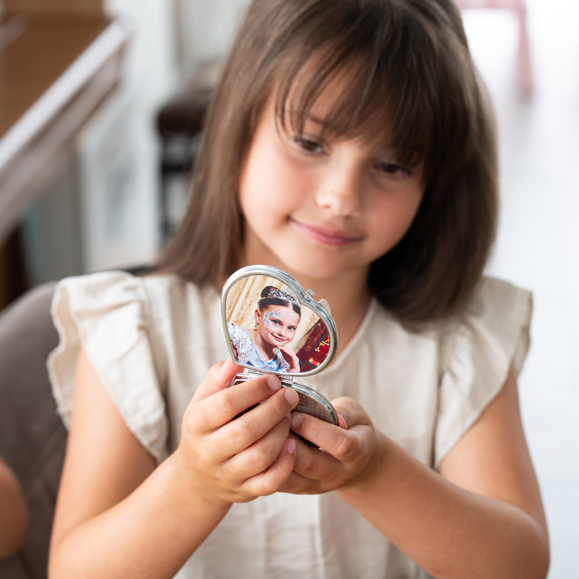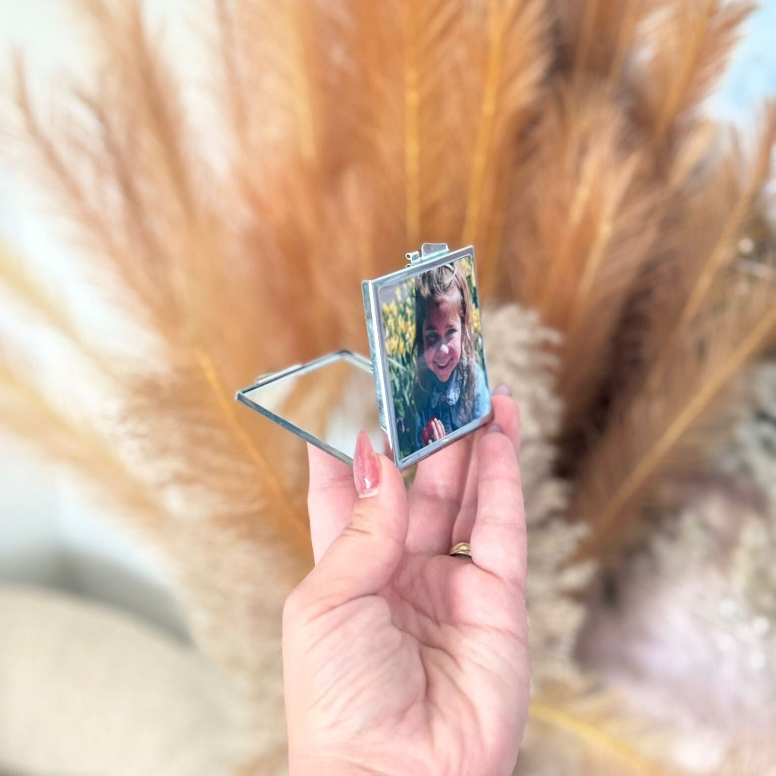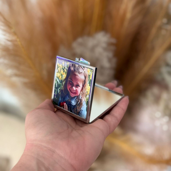 Laat een geliefde foto, een bijzondere herinnering of een grappige selfie vereeuwigen op de buitenkant van het spiegeltje. Of je nu kiest voor een romantisch hartje of een strak vierkant ontwerp, het resultaat is altijd uniek en speciaal. Leuk voor jezelf, maar ook geweldig om cadeau te geven!