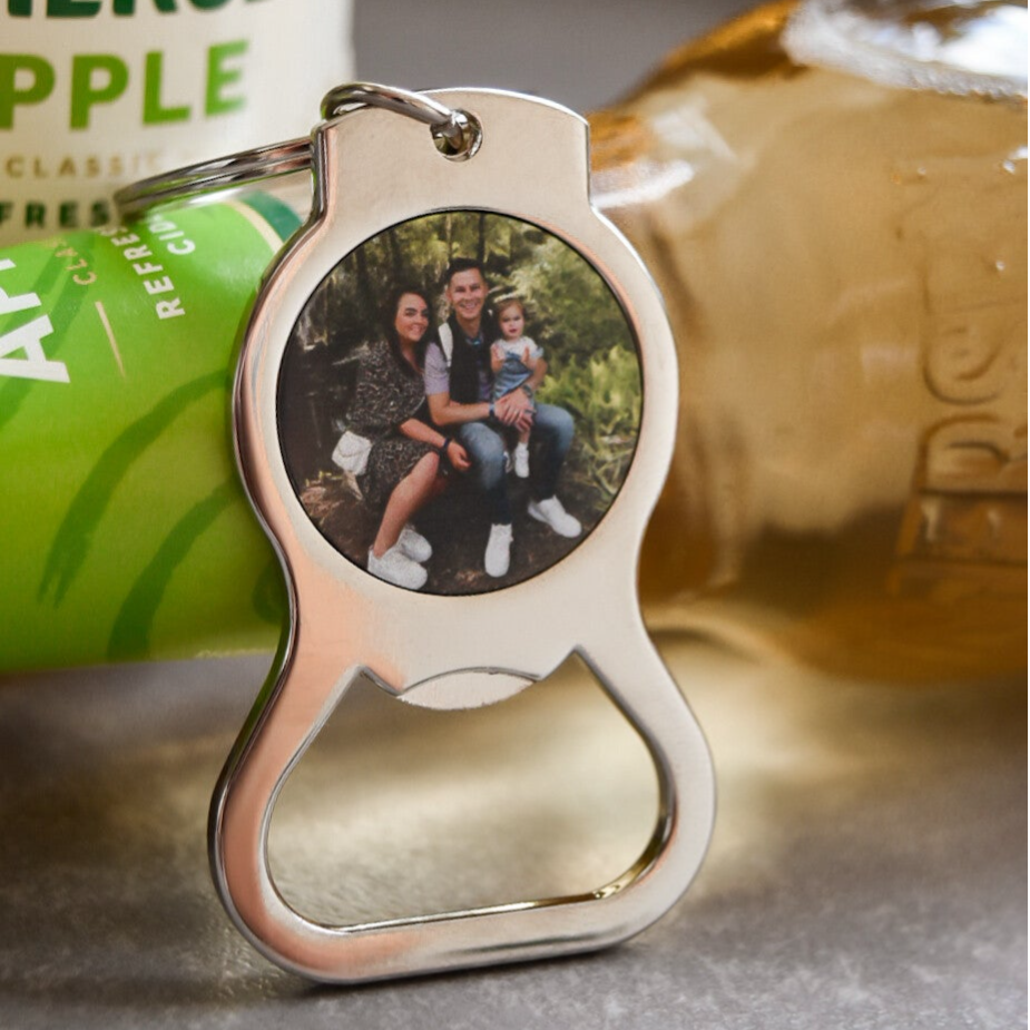 Open je favoriete drankje met een glimlach! Deze stoere en stijlvolle flesopener is niet alleen praktisch, maar ook een persoonlijk aandenken dat je altijd bij je draagt. Laat jouw favoriete foto bedrukken en maak van een alledaags gebruiksvoorwerp een uniek cadeau of herinnering.