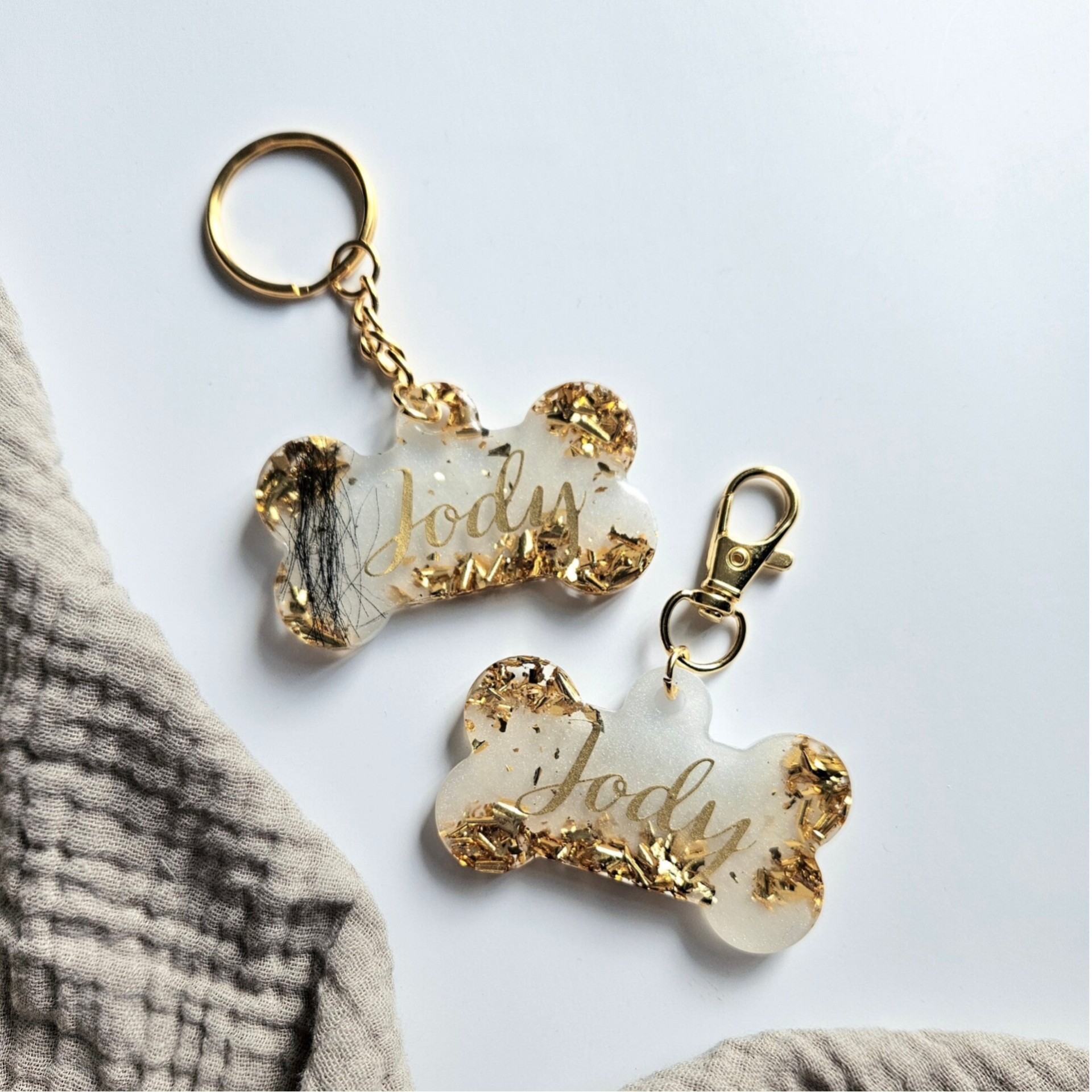 Een liefdevolle herinnering aan jouw geliefde huisdier, altijd bij je. Deze unieke handgemaakte sleutelhangers in botjes of visvorm zijn speciaal ontworpen als persoonlijk aandenken aan jouw trouwe viervoeter. Elk exemplaar wordt met de hand gegoten met epoxyhars en kan geheel naar wens worden gepersonaliseerd.
