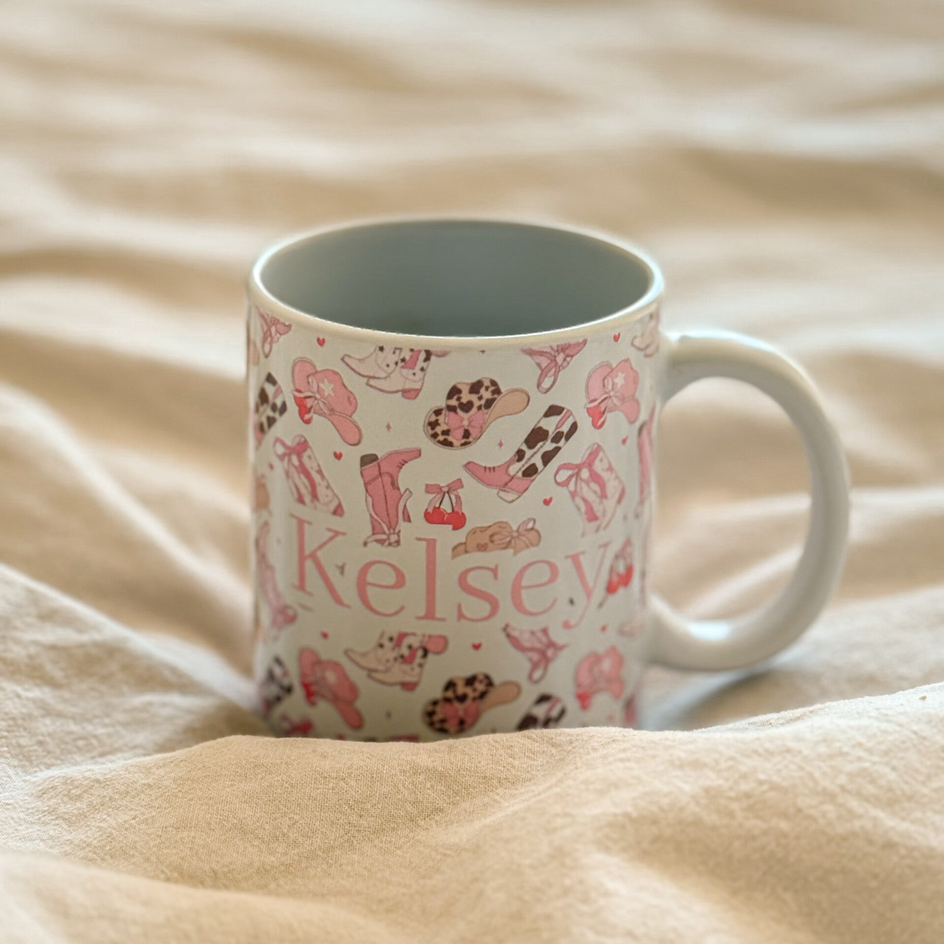 Elke mok is voorzien van een leuk, stoer en vrouwelijk cowgirl design, denk aan laarsjes en hoeden in zachte pastelkleuren of met leuke printjes. En het mooiste? Je kunt er jouw eigen naam aan toevoegen voor die unieke persoonlijke touch!
