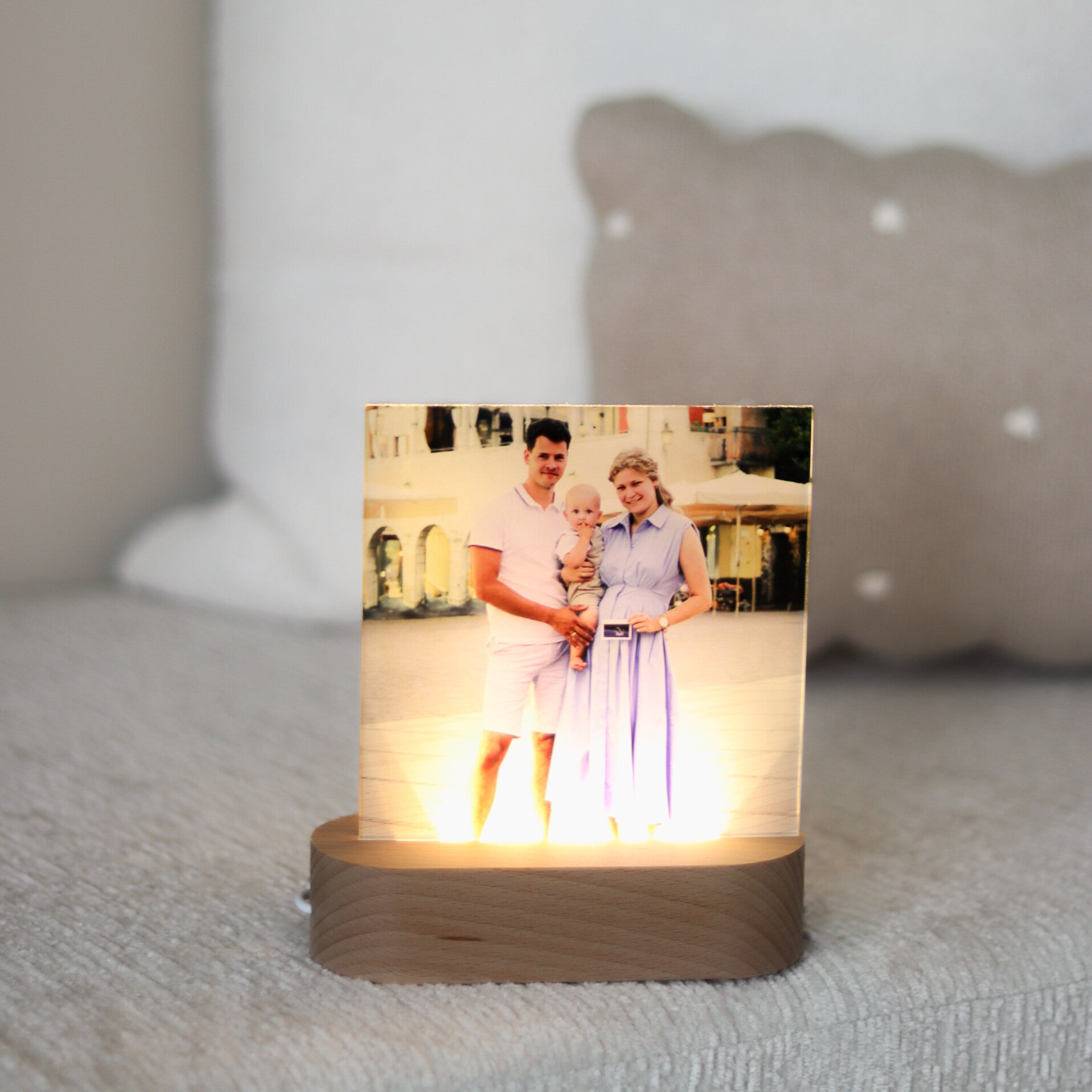 Of het nu gaat om een gezinsfoto, babyfoto, trouwfoto of een dierbare herinnering, jouw afbeelding wordt met zorg verwerkt op het lampje. Overdag een stijlvolle woonaccessoire, ’s avonds een warme lichtbron vol emotie.